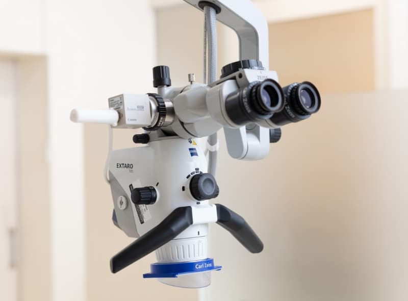 当院では専門知識を有する歯科医師を配置し、手術用顕微鏡を設置して複雑な根管治療や異物除去に活用しています。